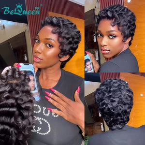 Bequeen Perruque “Chioma” Pixie noir curly sans colle Prêt à porter couleur blonde
