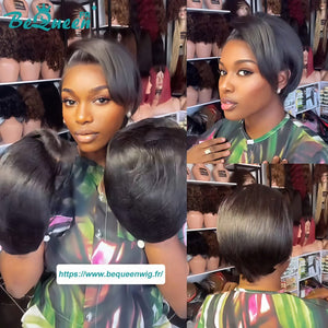 Bequeen Perruque "Chris" Noir Prêt à porter 100% cheveux humains sans colle style 15