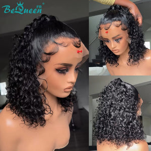 BeQueen "Alice" Perruque noir Bob Curly wave lace frontale 13*4