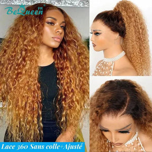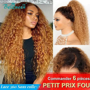 BeQueen „Taliesin“ lange Lace-360-Curly-Wave Perücke mit unsichtbarer Anpassungsbinde, fertig zum Tragen, klebefrei + vorgebleicht, unglaublich günstig