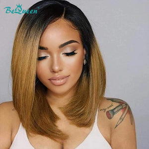 BeQueen Bob Lace Front Perücke 13x1x4 Bob Highlight Ombre Haarfarbe Wurzelschwarz und Honig #27