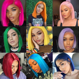 BeQueen Bob-Perücke, glattes Haar, Spitzenfront, 13 x 4, individuelle Farbmischung, Regenbogen