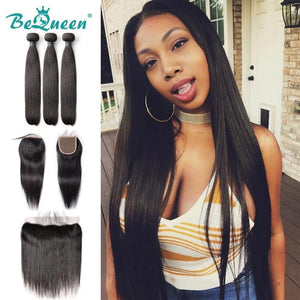 BeQueen Glattes Haargewebe mit Frontal- oder Verschluss-Peruanerhaar, 100 % reines Haar, Typ 8A