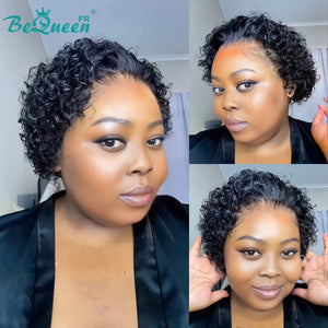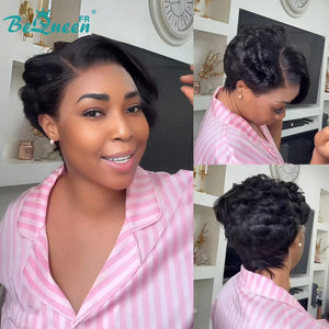 Bequeen Perruque “Suwis” Pixie lisse noir Sans colle Frontale Lace Avec Raie Du Côté