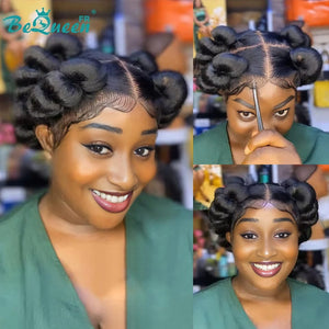 BeQueen „Helno“ Pixie-Perücke mit Seitenscheitel, geflochtenem Twist, Vollspitzen-Perücke ohne Kleber, Stil 2