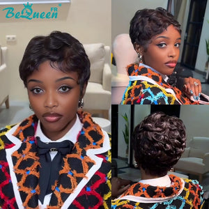 Königin Perücke „coco“ Pixie Noir Mix Braun Lockig Klebefrei Wellig Fertig zu tragen 100% menschliche Haare