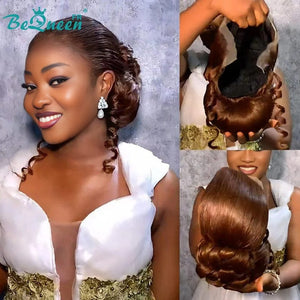 BeQueen „Ollie“ Schwarze Hochzeitsperücke mit Chignon und brauner Farbe mit Spitzenfrontal 13x4