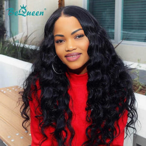 BeQueen-Perücke mit natürlichen Wellen, Farbverlaufsschnitt mit 13x4-Spitze vorne in den Farben Braun mit Honig-Highlights #P4/27/30 und Braun mit Karamell-Highlights #P7/31