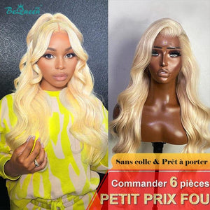 BeQueen „Elsa“ lange gewellte blonde Perücke mit 13x4 Spitzenfront, sofort tragbar, ohne Kleber, VERRÜCKTLICH niedriger Preis