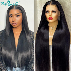 BeQueen "Mina" Lange, glatte Perücke mit Spitzenverschluss 4X4 18 Zoll halbpreisig