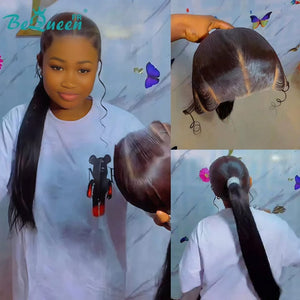 BeQueen gerade schwarze Vollspitze-Perücke, ohne Kleber
