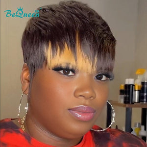 Bequeen “Felipe” Straight Pixie Wigs with Bangs Machine Made Black Mix Honey