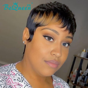 Bequeen “Rui” Straight Pixie Wigs with Bangs Machine Made