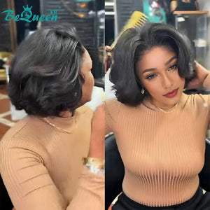BeQueen “Cabin” Bob Layered Lace Front Wig 13x4 Black 300% Density