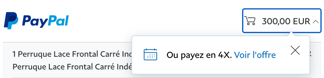 3/ Une fois dans votre compte PayPal, cliquez sur "Voir l'offre" à côté de "Ou payer en 4 fois" :