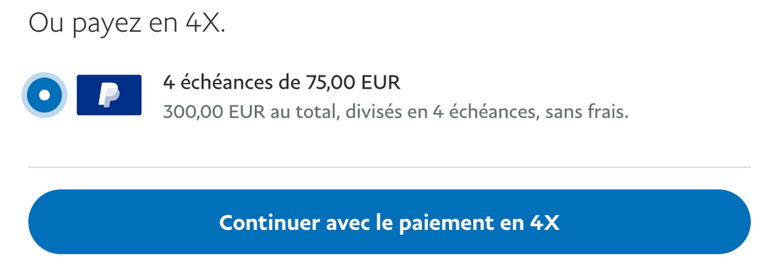 puis, cliquez sur "Continuer avec le paiement en 4X" :