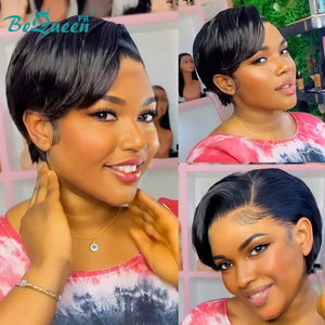 Bequeen Perruque "Chris" Noir liso Pronto a vestir 100% cabelo humano Sem cola