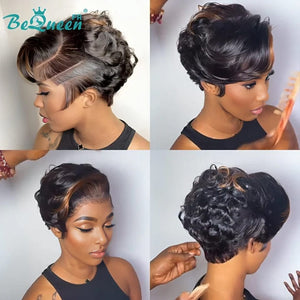 Bequeen Perruque "Chris" Noir Pronto a vestir 100% cabelo humano frontal lace Com Fenda Lateral