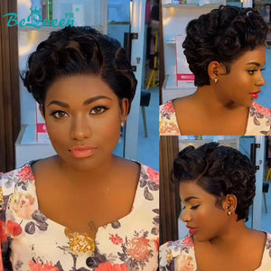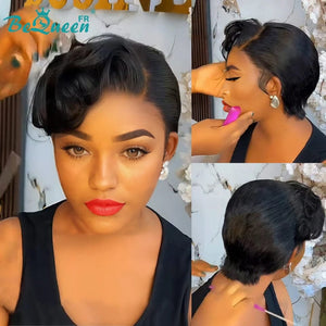 Bequeen Perruque “Coco” Pixie curly noir Sans colle Frontale Lace style 4